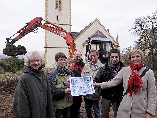 Die damalige Pfarrerin Sigrid Zweygart-Perez und der Kirchengemeinderat waren von einem solchen "Bibelgarten" ebenfalls sehr angetan – einzige Bedingung: „Es darf nichts kosten“. Los ging die Suche nach Sponsoren, Spendern und ehrenamtlichen Mitstreitern. Schon bald fand sich ein kleines Team zusammen, darunter die beiden Profi-Gärtner Isabell und Dirk Leistikow. Erste Pläne wurden gemacht, wie das Ganze aussehen könnte, mit denen man sich dann auch bei verschiedenen Gelegenheiten der Öffentlichkeit präsentierte und um Spenden und Mithelfer warb. Und dann reihte sich eine schicksalhafte Begegnung an die andere.